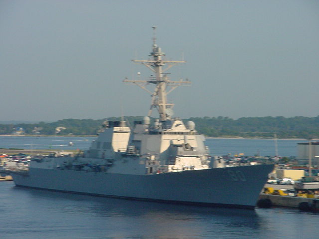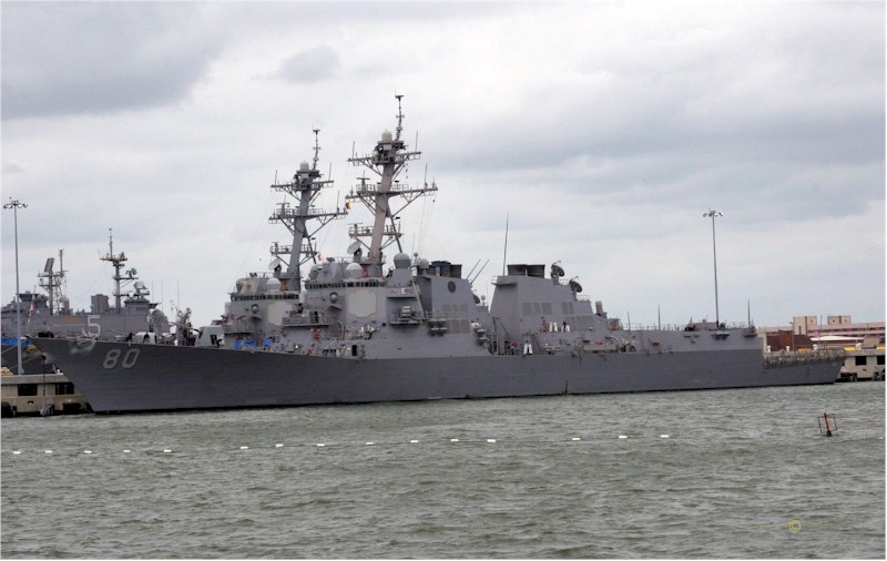 | 89k | Norfolk, VA, September 12 2006, the Arleigh-Burke class guided-missile destroyer USS Roosevelt (DDG-80) sits moored pier side at Naval Station Norfolk. Copyright by terms of Creative Commons. Photo provided by T.M. Wolf. | Bill Gonyo |