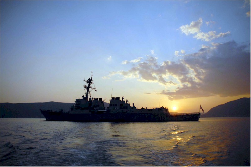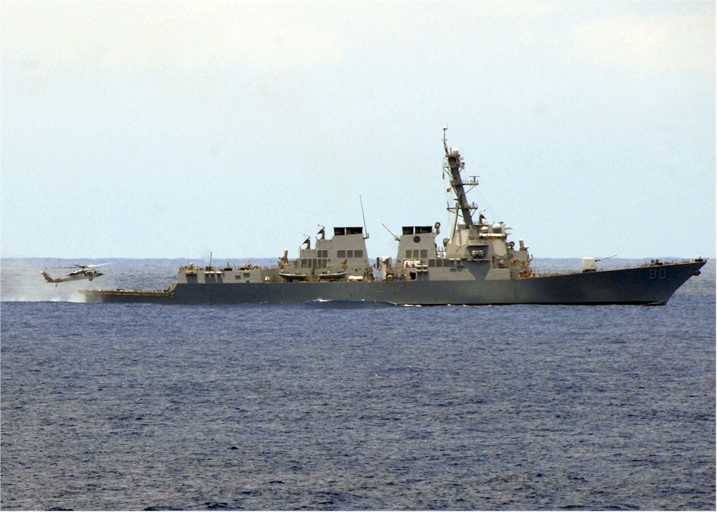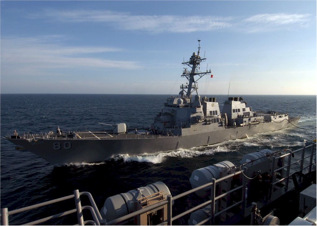 | 144k | 080905-N-4236E-057. Atlantic Ocean, September 5 2008, the guided-missile destroyer USS Roosevelt (DDG 80) transits the Atlantic Ocean. Roosevelt is deployed as part of the Iwo Jima Expeditionary Strike Strike Group, which is supporting maritime security operations in the U.S. Navy's 5th and 6th Fleet areas of responsibility. U.S. Navy photo by Mass Communication Specialist Seaman Chad R. Erdmann. | Robert M. Cieri |