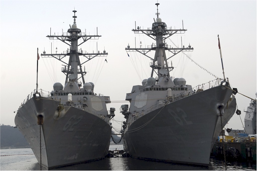 | 134k | 091228-N-9123L-001. Yokosuka, Japan, December 28 2009, guided-missile destroyers USS Fitzgerald (DDG 62) and USS Lassen (DDG 82) are moored at Fleet Activities Yokosuka as crews from both ships enjoy a holiday stand-down. Fitzgerald and Lassen are two of seven Arleigh Burke-class guided-missile destroyers assigned to Destroyer Squadron 15, and are permanently forward-deployed to Yokosuka. U.S. Navy photo by Mass Communication Specialist 2nd Class Byron C. Linder. | Robert M. Cieri |