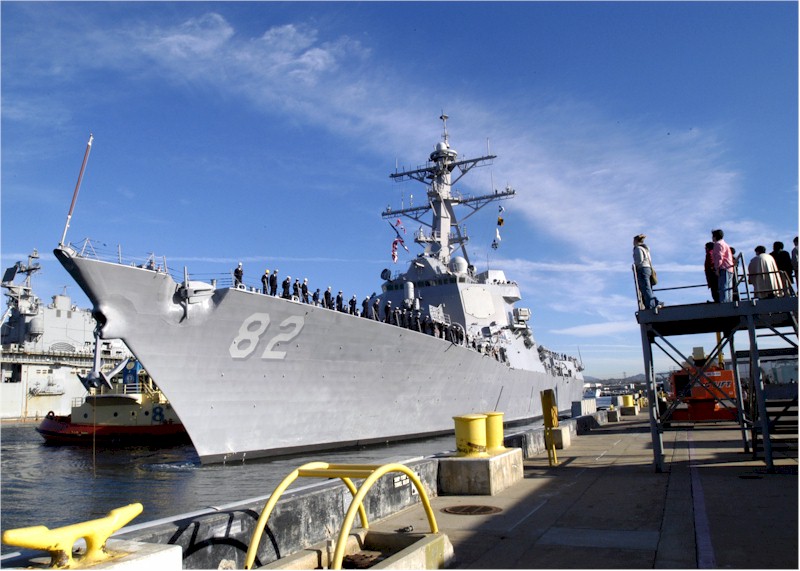 | 75k | 050902-N-9851B-003. Yokosuka, Japan, September 2 2005, the Arleigh Burke-class guided missile destroyer USS Lassen (DDG 82) pulls into her new forward deployed operating base, Commander Fleet Activities Yokosuka (CFAY). Lassen shifted her homeport from Norfolk, Va., to Yokosuka, Japan. U.S. Navy photo by Photographer's Mate 2nd Class John L. Beeman. | Bill Gonyo |