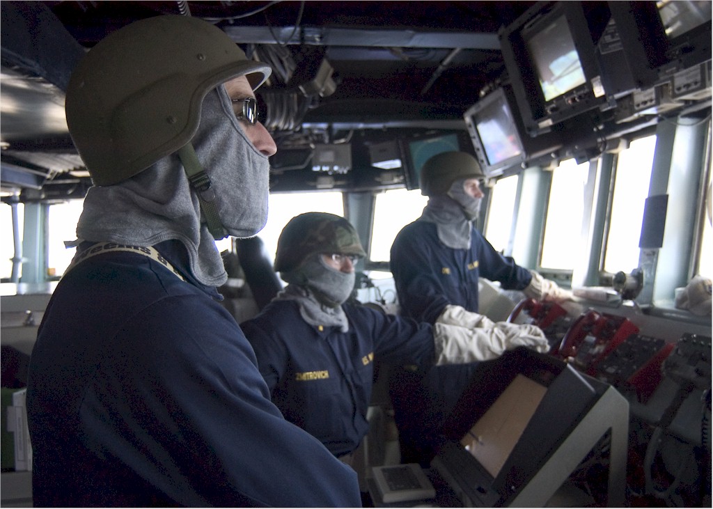 | 175k | 070413-N-5253W-002. Pacific Ocean, April 13 2007, Ensign Michael Miller, left, stands the officer of the deck (OOD) watch on the bridge of the Arleigh Burke-class guided-missile destroyer USS Lassen (DDG 82) during an integrated training team exercise. U.S. Navy photo by Mass Communication Specialist Seaman Gabriel S. Weber. | Robert M. Cieri |