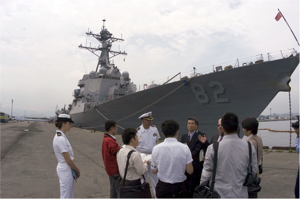 | 147k | 070618-N-1251W-003. Oita, Japan, June 18 2007, the USS Lassen (DDG 82) Commanding Officer, Cmdr. Marshall B. Brown, takes part in a news conference with local media during Lassen's port visit to Oita. Lassen's visit marks the first time in three years a U.S. Navy ship has visited Oita. The Arleigh Burke-class guided-missile destroyer is forward deployed to Commander Fleet Activities Yokosuka, Japan, and is part of Destroyer Squadron 15 operating in the U.S. 7th Fleet Area of Responsibility. U.S. Navy photo by Mass Communication Specialist 3rd Class Matthew R. White. | Robert M. Cieri |