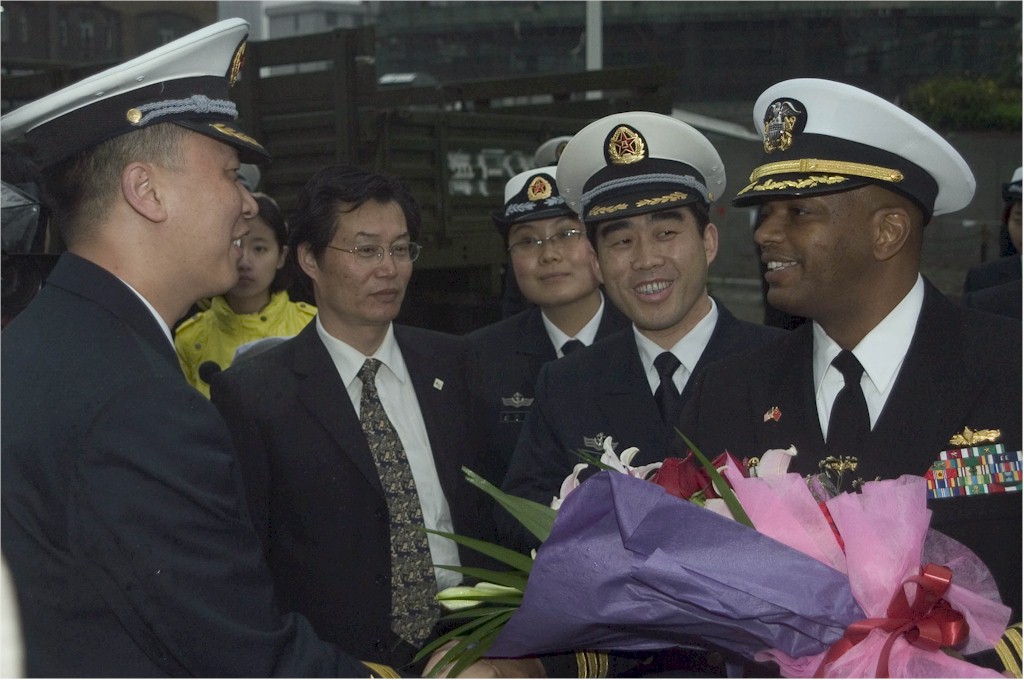 | 150k | Shanghai, People's Republic of China, April 8 2008, USS Lassen (DDG 82) Commanding Officer Cmdr. Anthony L. Simmons greets officials from the People's Liberation Army (Navy) shortly after Lassen arrived in Shanghai, People's Republic of China. Shanghai, meaning, “go onto the sea” in English, is one of the world’s busiest ports. While in port Sailors from Lassen will have the opportunity to experience the local culture and interact with their People’s Liberation Army (Navy) counterparts. U.S. Navy photo by Mass Communication Specialist 3rd Class Matthew R. White | Bill Gonyo |