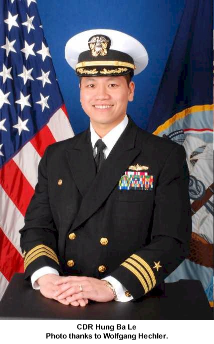 | 126k | 091107-N-1251W-079. Da Nang, Vietnam, November 7 2009, Cmdr. H. B. Le, commanding officer of the Arleigh Burke-class guided-missile destroyer USS Lassen (DDG 82), shares a laugh with Ensign Michael Quaglino as Lassen nears Da Nang, Vietnam. Le escaped Vietnam with his family during the Vietnam conflict in 1975 and is returning to Vietnam for the first time. Lassen is joining the amphibious command ship USS Blue Ridge (LCC 19) in Da Nang for a scheduled port visit. U.S. Navy photo by Mass Communication Specialist 2nd Class Matthew R. White. | Robert M. Cieri |