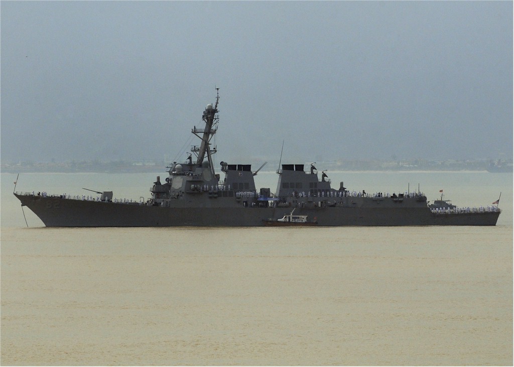 | 120k | 091107-N-7280V-386. Da Nang, Vietnam, November 7 2009, the Arleigh Burke-class guided-missile destroyer USS Lassen (DDG 82) anchors during a scheduled port visit in Da Nang. Cmdr. H.B. Le, commanding officer of Lassen is visiting Vietnam for the first time since he and his family fled the country in 1975. U.S. Navy photo by Mass Communication Specialist 3rd Class Daniel Viramontes. | Robert M. Cieri |