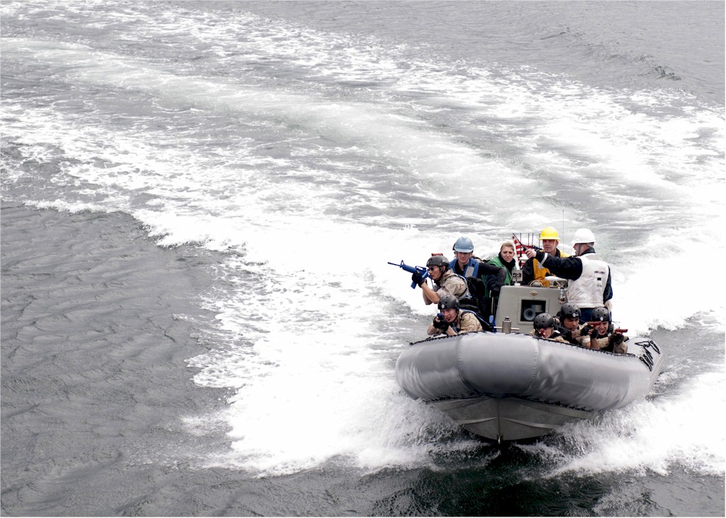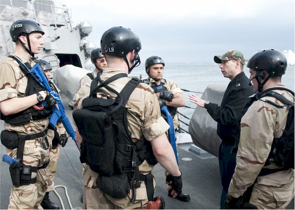 | 206k | 100128-N-8721D-003. Yokosuka, Japan, January 28 2010, sailors assigned to the visit, board, search and seizure (VBSS) team aboard the guided-missile destroyer USS Lassen (DDG 82), perform training during a VBSS exercise. The VBSS team trains on various weapons and boarding procedures to enhance their proficiency skills when boarding and searching vessels. U.S. Navy photo by Mass Communication Specialist 3rd Class Devon Dow. | Robert M. Cieri |
