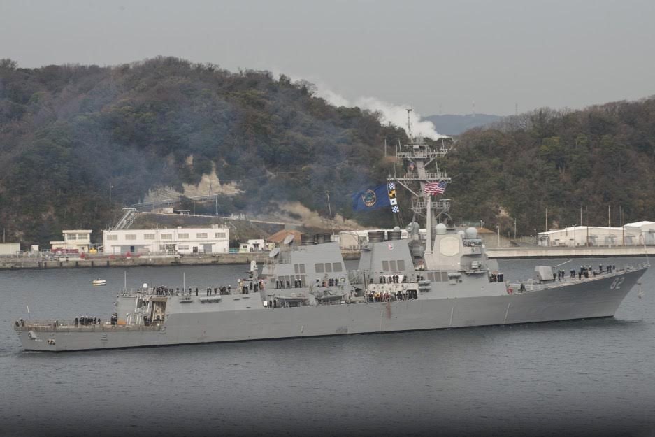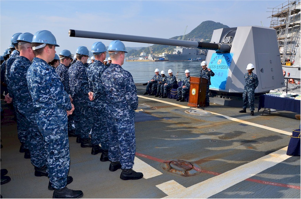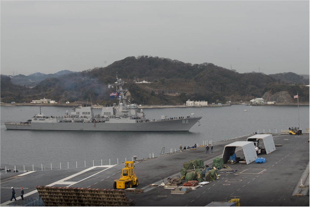 | 131k | 160106-N-YD641-098. Yokosuka, Japan, January 6 2016, the Arleigh Burke-class guided-missile destroyer USS Lassen (DDG 82) departs Fleet Activities Yokosuka for the final time as part of the forward-deployed naval forces. Lassen returns to the U.S. later this year after 10 years of being forward-deployed to the Indo-Asia-Pacific with Destroyer Squadron (DESRON) 15. USS Barry (DDG 52) will replace Lassen, bringing additional Ballistic Missile Defense Capability to the Forward Deployed Naval Forces, in Spring of 2016 U.S. Navy photo by Mass Communication Specialist Seaman Matthew Riggs. | Ron Reeves |