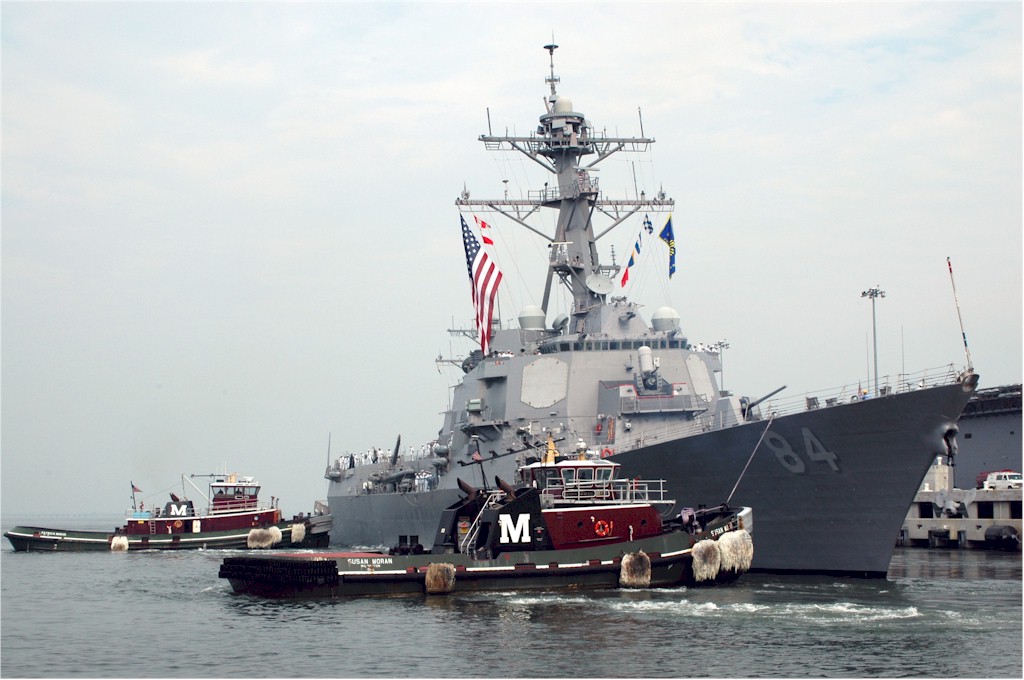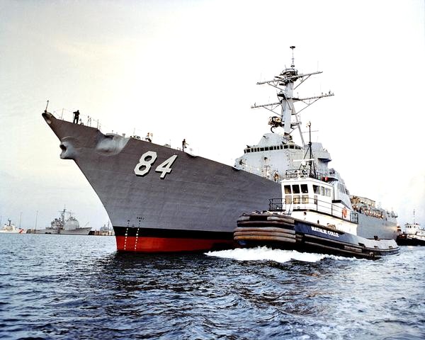 | 120k | 080605-N-0780F-001. Souda Bay, Crete, Greece, June 5 2008, the guided-missile destroyer USS Bulkeley (DDG 84) arrives in Souda harbor for a routine port visit. Tugs are assisting her to her berth. U.S. Navy photo by Paul Farley. | Robert M. Cieri |