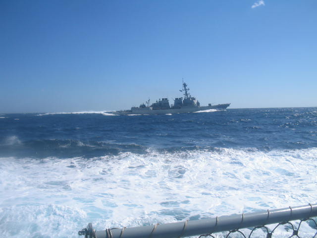 50k | 10 April 2006 off the coast of North Carolina during high speed maneuvers, taken from the flight deck of the USS Cole (DDG-67). | FC3 Leland Ford |