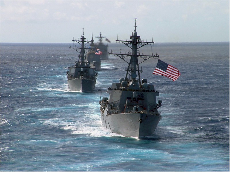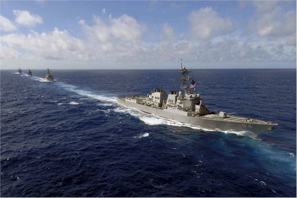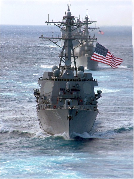 | 124k | February 25 2008, the guided-missile destroyer USS Bulkeley (DDG 84) leads the guided-missile destroyer USS Ross (DDG 71), the guided-missile cruiser USS Philippine Sea (CG 58) and the dock landing ship USS Ashland (LSD 48) as they steam with other ships of Nassau Expeditionary Strike Group during a transit of the Atlantic Ocean. U.S. Navy photo by Lt. j.g. Anthony Falvo, ID# 080225-N-5180F-027. | Robert M. Cieri |