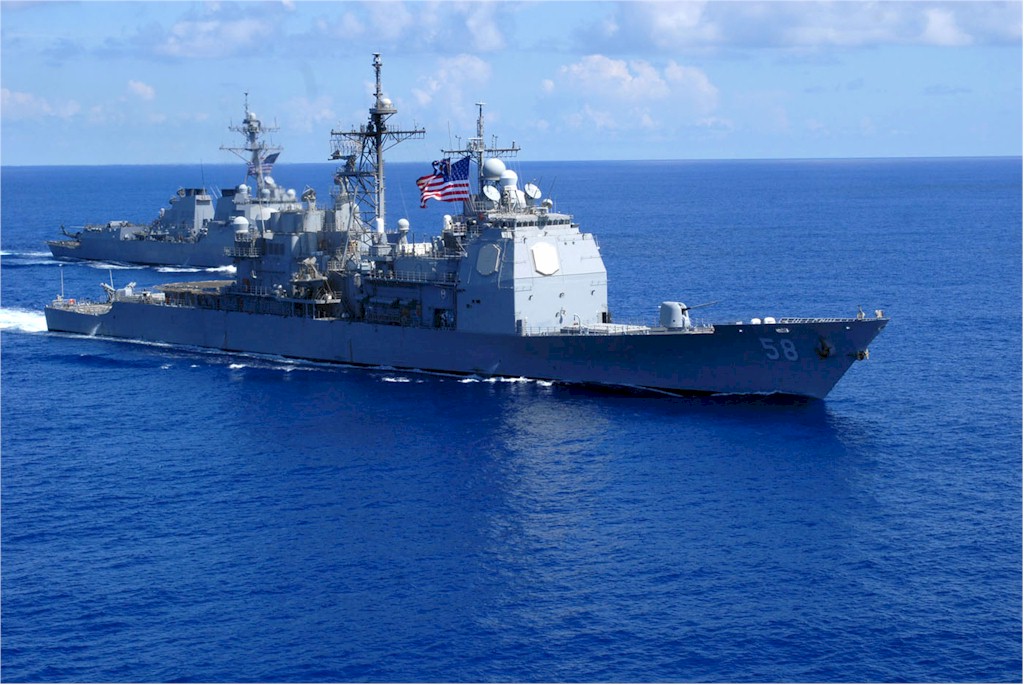 | 177k | 080705-N-5712P-125. Atlantic Ocean, July 5 2008, the guided-missile cruiser USS Philippine Sea (CG 58) and the guided-missile destroyer USS Bulkeley (DDG 84) transit westward in the Atlantic Ocean as part of the Nassau Expeditionary Strike Group. The Nassau Expeditionary Strike Group is completing its deployment to the U.S. 5th and 6th Fleet areas of responsibility. U.S. Navy photo by Mass Communication Specialist Seaman Jonathan Pankau. | Robert M. Cieri |