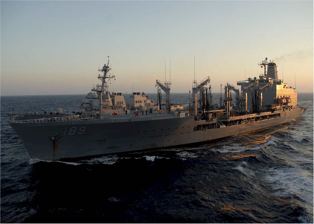 | 154k | 080708-N-2735T-037. Atlantic Ocean, July 5 2008, the Military Sealift Command fleet replenishment oiler USNS John Lenthall (T-AO 189) steams alongside the guided-missile destroyer USS Bulkeley (DDG 84) as the ships of the Nassau Expeditionary Strike Group transit westward across the Atlantic Ocean after a deployment to the U.S. 5th and 6th Fleet areas of responsibility. U.S. Navy photo by Mass Communication Specialist 3rd Class Coleman Thompson. | Robert M. Cieri |