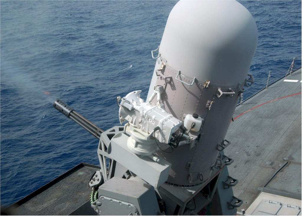 | 166k | 150902-N-AO823-164. Atlantic Ocean, September 2 2015, the Combat Systems Department aboard the Arleigh Burke-class guided-missile destroyer USS Bulkeley (DDG 84) fires the ship's Phalanx close-in weapons system (CIWS). Bulkeley is underway for Composite Training Unit Exercise (COMPTUEX), a series of training scenarios designed to certify the Harry S. Truman Strike Group as a deployment-ready fighting force capable of completing operations in overseas theaters. U.S. Navy photo by Mass Communication Specialist 3rd Class Michael J. Lieberknecht. | Ron Reeves |