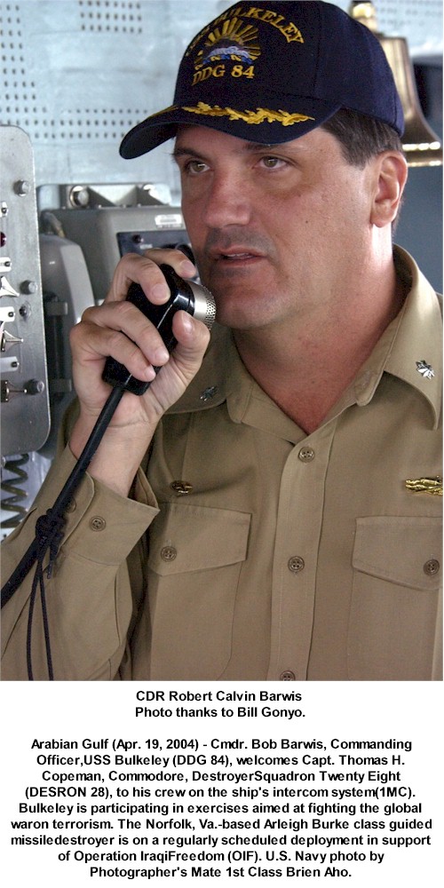 79k | 040615-N-5319A-009. Arabian Gulf June 15 2004, the guided missile destroyer USS Bulkeley (DDG 84) cruises the Arabian Gulf as Midshipmen from the United States Naval Academy (USNA) practice ship movements. Each summer sophomore and junior-year USNA students are assigned to ships throughout the world for two-week periods to learn basic surface warfare operations. The Norfolk, Va., based Bulkeley is on a regularly scheduled deployment in support of Operation Iraqi Freedom (OIF). U.S. Navy photo by Photographer's Mate 1st Class Brien Aho. | Bill Gonyo |