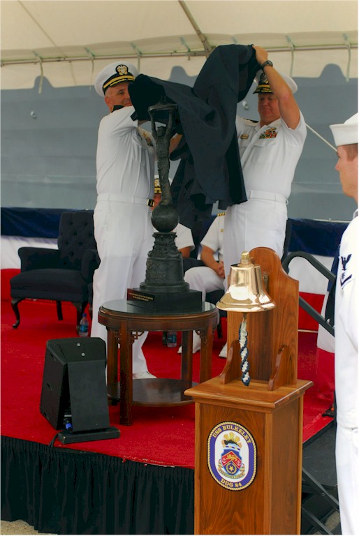 90k | 070822-N-1688B-052 NORFOLK, Va. (Aug. 22,2007) - Adm. Gary Roughead, commander of U.S. Fleet Forces Command, and Cmdr. John Beaver Jr., commanding officer of guided-missile destroyer USS Bulkeley (DDG 84), unveil the USS Arizona Memorial Trophy. The trophy was established to recognize the ship that has the best combat readiness in strike warfare, surface fire support and submarine warfare in the Navy. U.S. Navy photo by Mass Communication Specialist Seaman Apprentice Matthew Bookwalter. | Bill Gonyo |