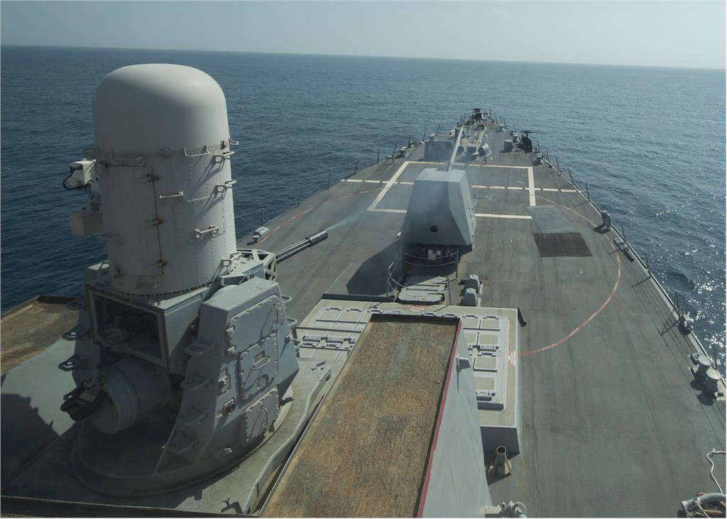| 170k | 131210-N-IG780-196. Gulf of Oman, December 10 2013, the Close in Weapons System (CIWS) aboard the guided-missile destroyer USS Bulkeley (DDG 84) fires during a live-fire exercise. Bulkeley is deployed as part of the Harry S. Truman Carrier Strike Group supporting maritime security operations and theater security cooperation efforts in the U.S. 5th Fleet area of responsibility. U.S. Navy photo by Mass Communication Specialist 3rd Class Shane A. Jackson. | Robert M. Cieri |
