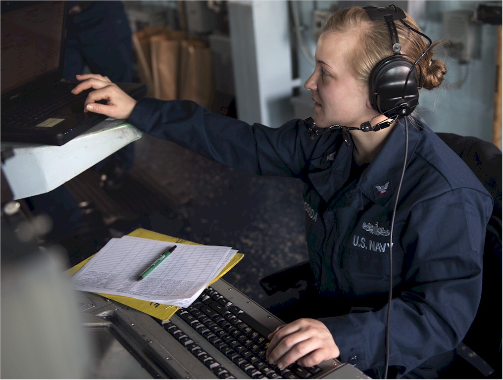 | 147k | 140221-N-MY642-024. Gulf of Oman, February 21 2014, Operations Specialist 3rd Class Sarah Svoboda stands watch on the bridge of the guided-missile destroyer USS Bulkeley (DDG 84). Bulkeley is deployed as part of the Harry S. Truman Carrier Strike Group supporting maritime security operations and theater security cooperation efforts in the U.S. 5th Fleet area of responsibility. U.S. Navy photo by Mass Communication Specialist 2nd Class Donald R. White Jr. | Robert M. Cieri |