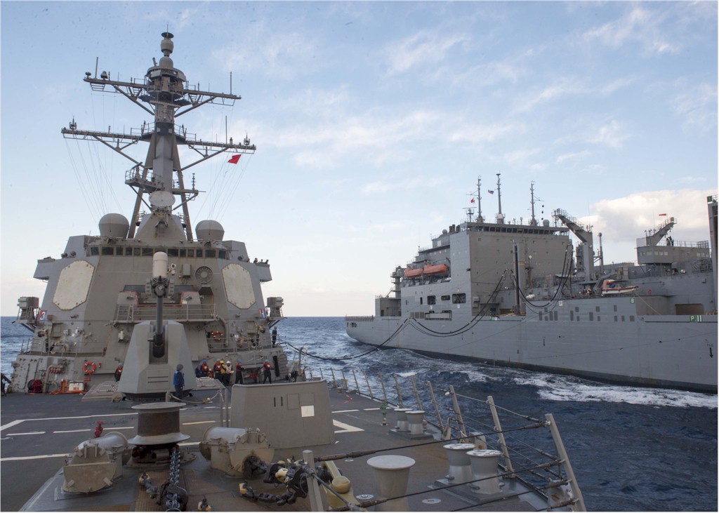 | 157k | 151215-N-AO823-036. Red Sea, December 15 2015, guided-missile destroyer USS Bulkeley (DDG 84) receives fuel from dry cargo ship USNS Medgar Evers (T-AKE 13) during a replenishment-at-sea. Bulkeley is deployed as part of the Harry S. Truman Carrier Strike Group supporting maritime security operations and theater security cooperation efforts in the U.S. 5th Fleet of responsibility. U.S. Navy photo by Mass Communication Specialist 2nd Class M. J. Lieberknecht. | Ron Reeves |