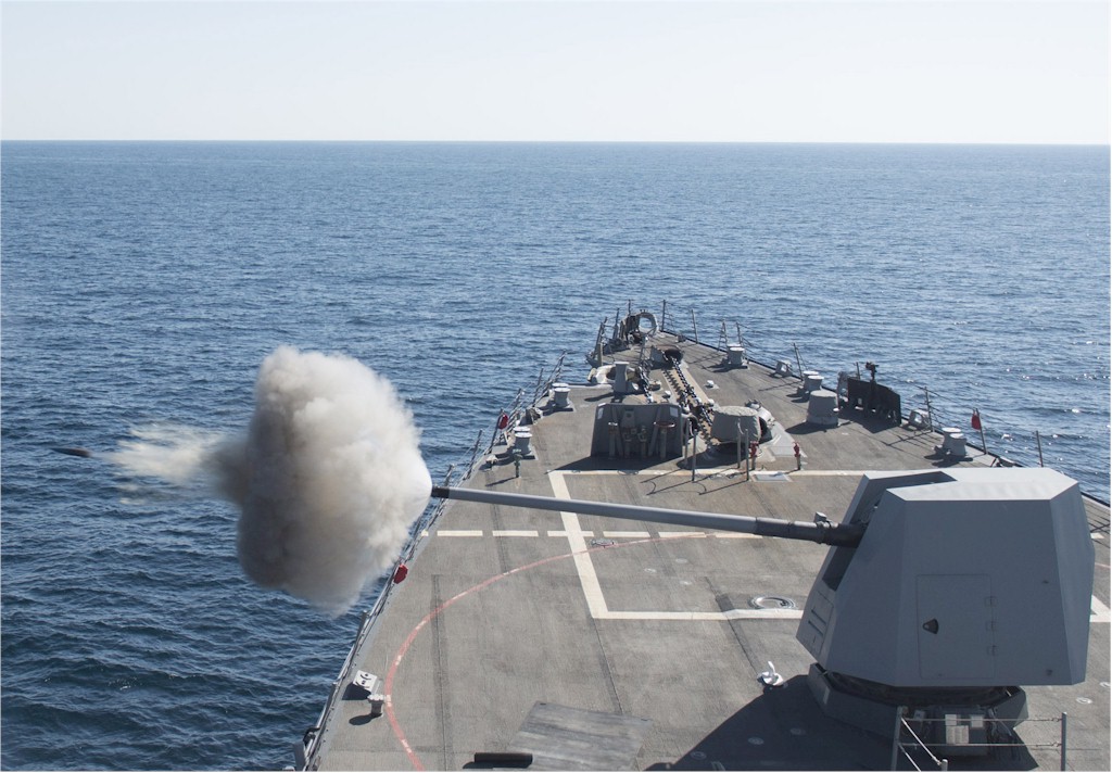 | 179k | 160207-N-AO823-006. Gulf of Oman, February 7 2016, guided-missile destroyer USS Bulkeley (DDG 84) fires its 5-inch gun during a live-fire training exercise. Bulkeley is deployed as part of the Harry S. Truman Carrier Strike Group in support of Operation Inherent Resolve, maritime security operations, and theater security cooperation efforts in the U.S. 5th Fleet area of operations. U.S. Navy photo by Mass Communication Specialist 2nd Class Michael J. Lieberknecht. | Ron Reeves |