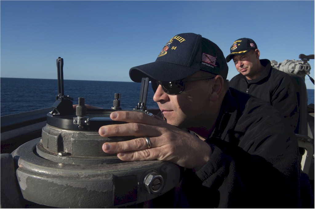 | 114k | 160916-N-KD168-010. Atlantic Ocean, September 16 2016, Chief Warrant Officer Andrew Beuck takes tracks ship's bearing from the bridge of guided-missile destroyer USS Bulkeley (DDG 84) during exercise Cutlass Fury 16. Cutlass Fury 16 is a combined, joint, maritime exercise designed to promote and enhance regional cooperation of partner nations off the east coast of North America. U.S. Navy photo by MC3 Magen F. Reed. | Ron Reeves |