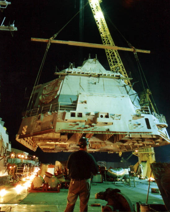 | 74k | The deckhouse being set onto the hull. © Ingalls Shipbuilding | Tom Bateman |