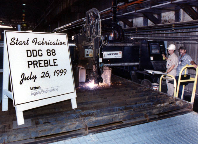 | 79k | The start of fabrication for USS Preble DDG-88 on 26 July 1999. © Ingalls Shipbuilding | Tom Bateman |