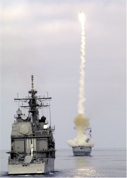 | 115k | 100929-N-4281P-100. Pacific Ocean, September 29 2010, sailors aboard the guided-missile destroyer USS Preble (DDG 88) conduct an operational tomahawk missile launch while underway in a training area off the coast of California. The launch tested the proficiency of the crew as well as the missile's ability to track and destroy targets well over the horizon. U.S. Navy photo by Mass Communication Specialist 1st Class Woody Paschall. | Bill Gonyo |
