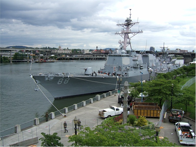 | 111k | 060610-N-6247M-007. Portland, OR, June 10 2006, guided missile destroyers USS John Paul Jones (DDG 53) and USS Preble (DDG 88) moored in Portland for the 99th Rose Festival. U.S. Navy photo by Photographer's Mate 1st Class Bruce McVicar. | Bill Gonyo |