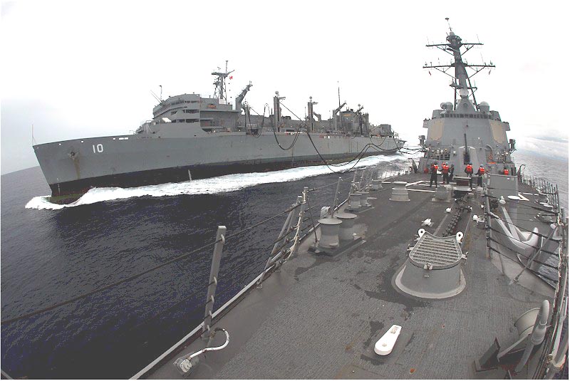 | 181k | 090324-N-9928E-040. Pacific Ocean, March 24 2009, the Arleigh Burke-class guided-missile destroyer USS Preble (DDG 88) approaches the Military Sealift Command fleet replenishment oiler USNS John Ericsson (T-AO 194)in preparation for a replenishment-at-sea. Preble, part of the John C. Stennis Carrier Strike Group, is on a scheduled six-month deployment to the western Pacific Ocean. U.S. Navy photo by Mass Communication Specialist 3rd Class Josue L. Escobosa. | Robert M. Cieri |