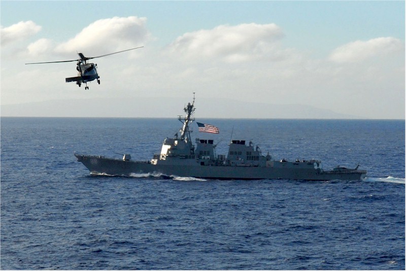 | 98k | 070206-N-0684R-397. Pacific Ocean, February 6 2007, an SH-60F Seahawk assigned to the "Eightballers" of Helicopter Anti-Submarine Squadron Eight (HS-8) flies in front of USS Preble (DDG 88) during a photo exercise off Guam. U.S. Navy photo by Mass Communication Specialist 3rd Class Ron Reeves | Robert M. Cieri |