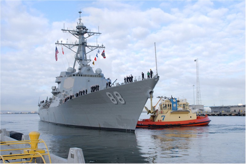 | 113k | 070829-N-9909C-003. San Diego, August 29 2007, guided-missile destroyer USS Preble (DDG 88) rounds the pier at Naval Base San Diego after returning from a 7.5-month deployment as part of John C. Stennis Carrier Strike Group. U.S. Navy photo by Cmdr. Jane Campbell. | Robert M. Cieri |