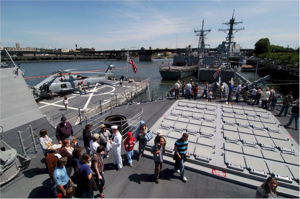 | 220k | 080608-N-7732W-028. Portland, Ore., June 8 2008, Portland residents learn about shipboard life during tours aboard the guided-missile cruiser USS Lake Champlain (CG 57), the guided-missile frigate USS Gary (FFG 51) and the guided-missile destroyers USS Kidd (DDG 100) and USS Preble (DDG 88). The ships were moored in downtown Portland for Fleet Week. U.S. Navy photo by Mass Communication Specialist 3rd Class Charles Whetstine. | Robert M. Cieri |