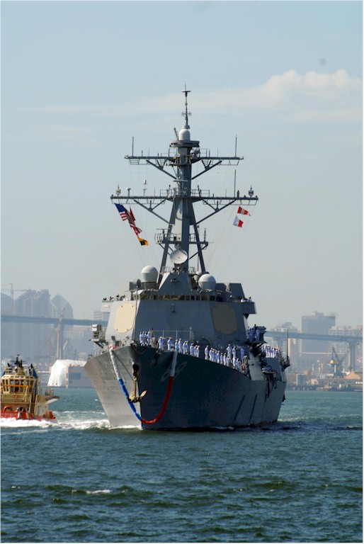 | 80k | 070829-N-9909C-002. San Diego, August 29 2007, sailors man the rails of guided-missile destroyer USS Preble (DDG 88) as they return from a 7.5-month deployment as part of John C. Stennis Carrier Strike Group. Hundreds of family members and friends were on hand to meet their loved ones. U.S. Navy photo by Cmdr. Jane Campbell. | Robert M. Cieri |