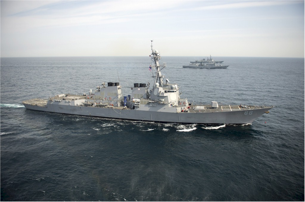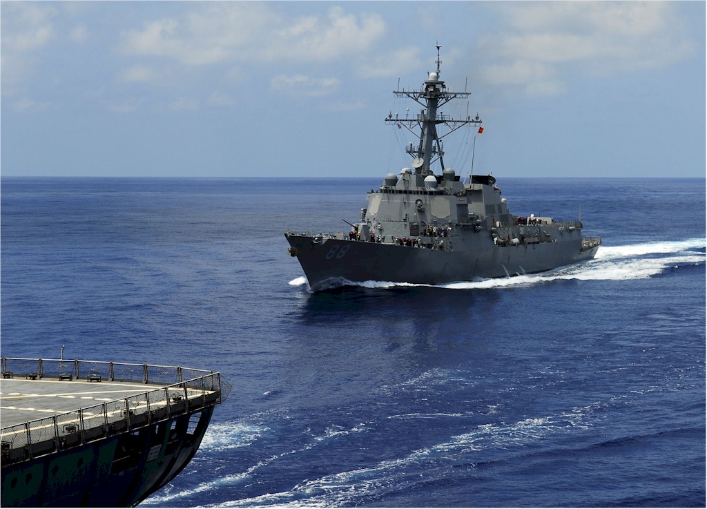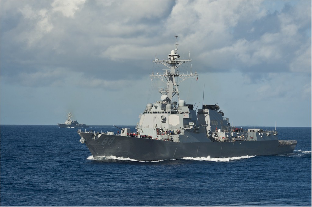 | 128k | The Arleigh Burke-class guided-missile destroyers USS Preble (DDG 88) and USS Momsen (DDG 92) transit the Pacific Ocean. Preble and Momsen are deployed with Carrier Strike Group (CSG) 11 for a deployment to the western Pacific region. U.S. Navy photo by Mass Communication Specialist 3rd Class Raul Moreno Jr. Photo 130429-N-LP801-098. | Ron Reeves |