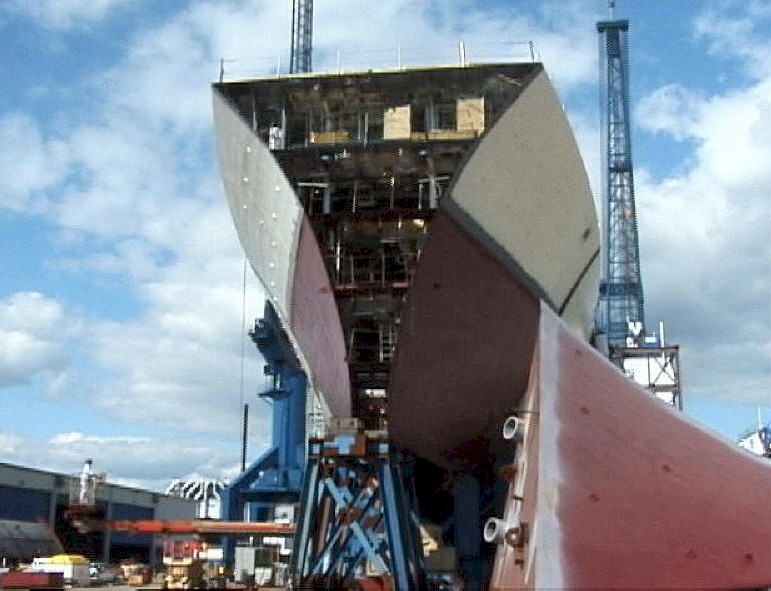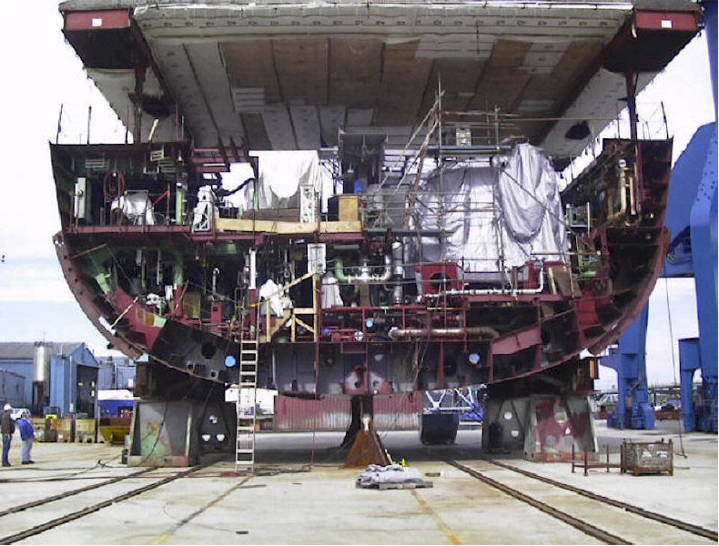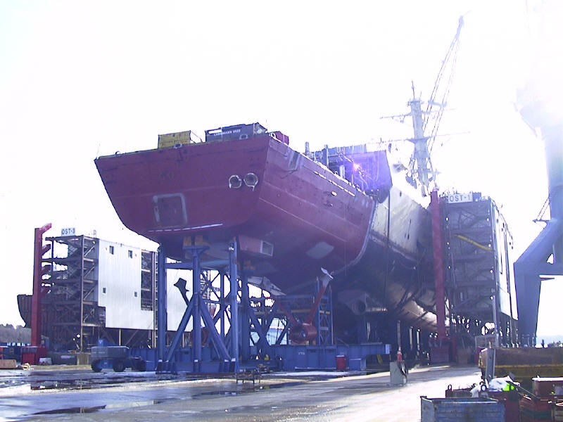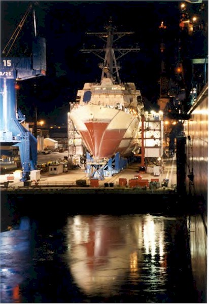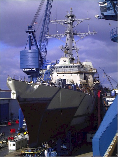 | 75k | DDG 90 Gets her bow! The bow sections were put in place on 18 October, 2001. | USN |