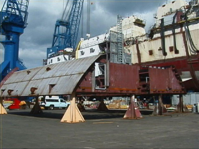 | 82k | Sections of the bow are staged and ready to be lifted. | USN |