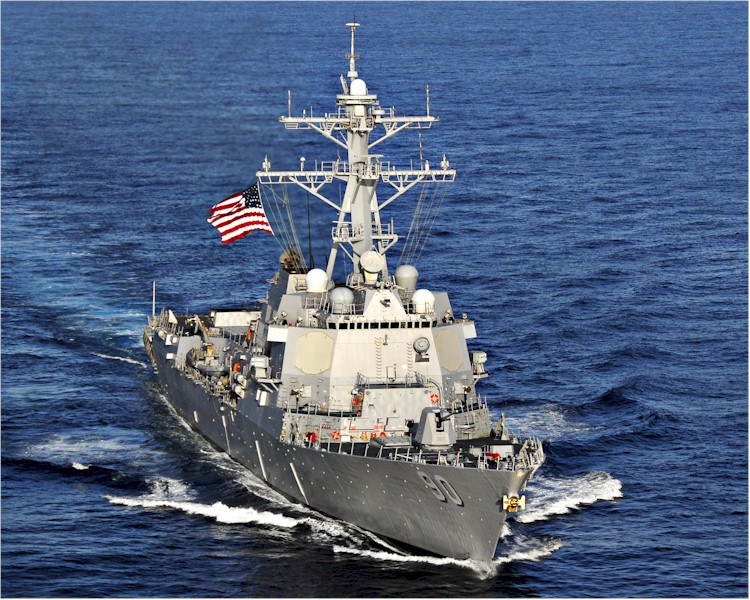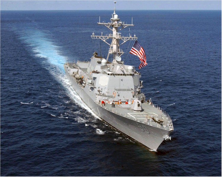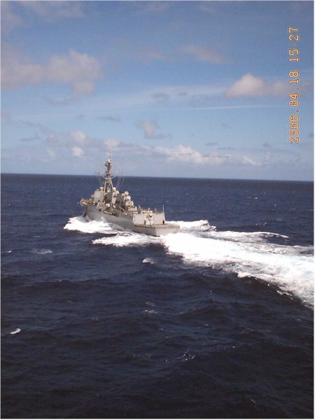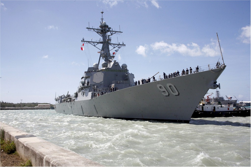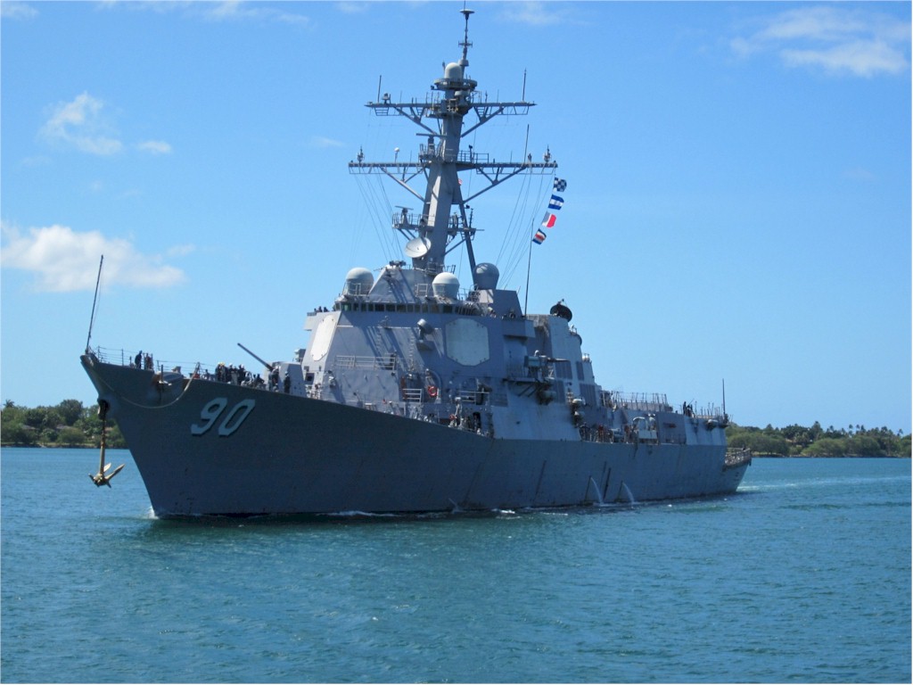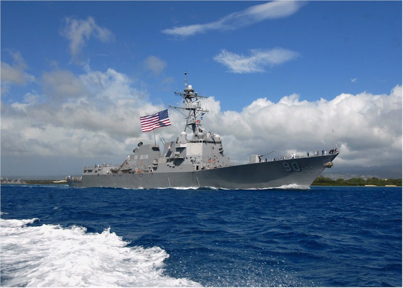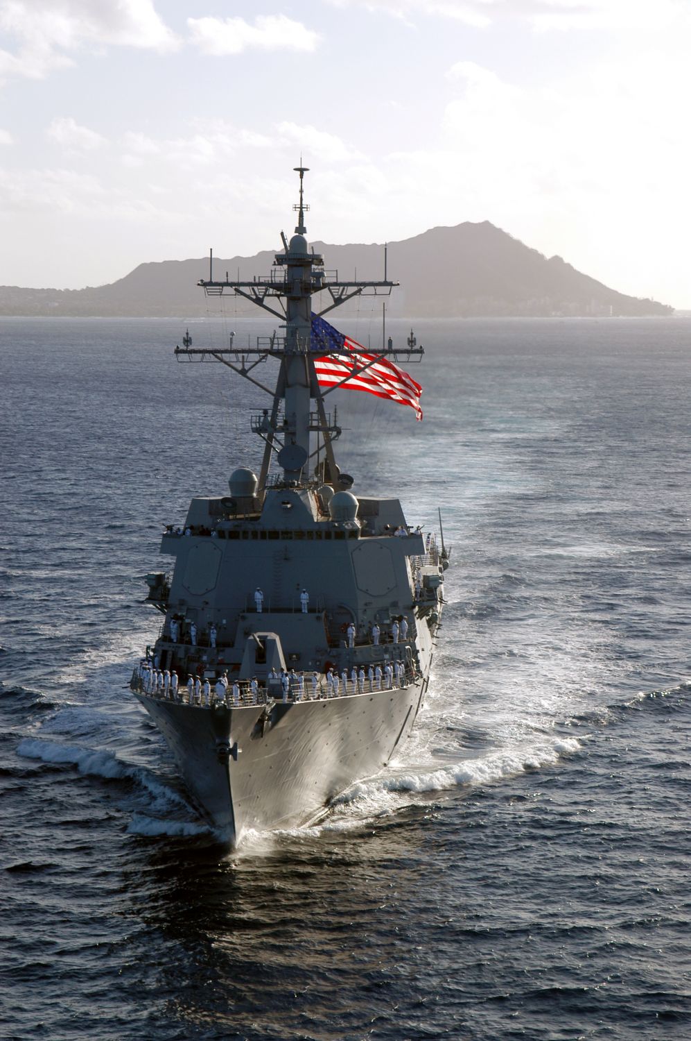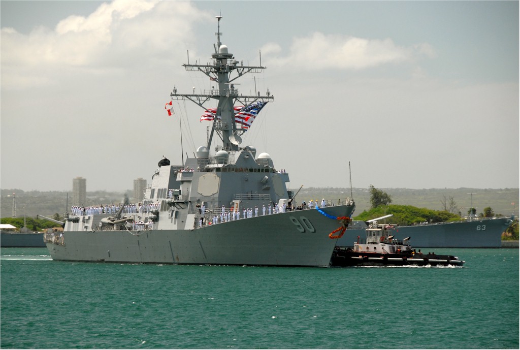 | 104k | Pearl Harbor, HI, January 30 2008, the Arleigh Burke-class guided-missile destroyer USS Chafee (DDG 90) departs Naval Station Pearl Harbor to join the USS Nimitz (CVN 68) Carrier Strike Group for operations in the western Pacific. U.S. Navy photo by Mass Communication Specialist 2nd Class Michael A. Lantron, ID# 080130-N-9758L-225. | Robert M. Cieri |