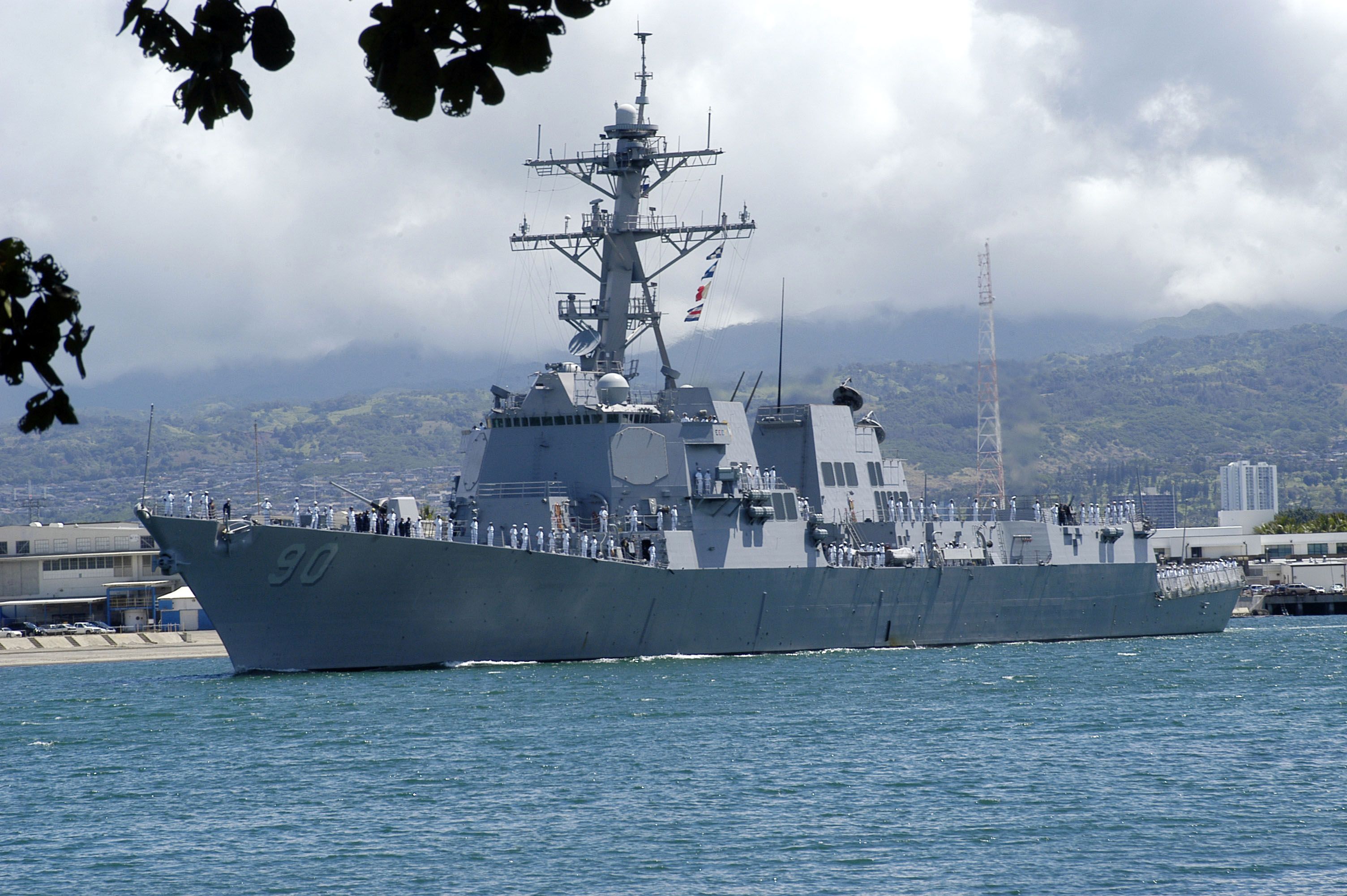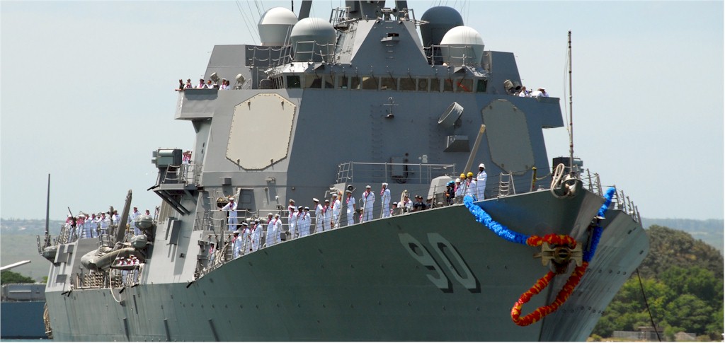 | 159k | 150518-N-WF272-168. Pearl Harbor, May 18 2015, the guided-missile destroyer USS Chafee (DDG 90) departs Joint Base Pearl Harbor-Hickam for an independent deployment. The ship will conduct theater security cooperation and maritime presence operations with partner nations as well as participate in the exercise Talisman Saber within U.S. 7th Fleet area of operations and is expected to play an integral part in counter-illicit trafficking mission Operation Martillo in U.S. 4th Fleet area of operations. U.S. Navy photo by Mass Communication Specialist 2nd Class Diana Quinlan. | Ron Reeves |