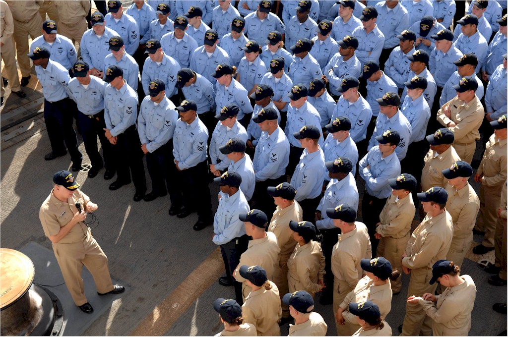 | 157k | 080818-N-0995C-059. Pearl Harbor, Hawaii, August 18 2008, Chief of Naval Operations (CNO) Adm. Gary Roughead answers questions from Sailors aboard the Arleigh Burke-class guided missile destroyer USS Chafee (DDG 90) during an all-hands call on the ship's flight deck. U.S. Navy photo by Mass Communication Specialist 3rd Class Eric J. Cutright. | Bill Gonyo |