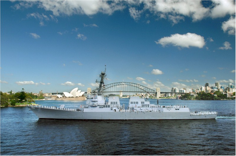 | 102k | 060130-N-0000X-018, Sydney, Australia, January 30 2006, the guided missile destroyer USS Pinckney (DDG 91) transit pass the World Famous Sydney Opera house as it prepares to make a scheduled port visit to Sydney. Pinckney will be participating in the Pacific 2006 International Maritime Exposition at Sydney’s Exhibition Centre. This is a major international event that showcase the latest in maritime and naval technology from throughout the world. Royal Australian Navy photo by Able Seaman Paul Berry | - |