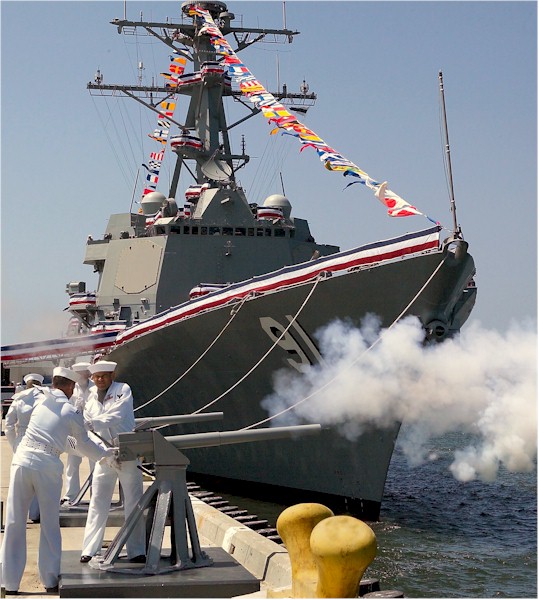 | 97k | The Naval Air Station Point Mugu Saluting Battery renders a 19-gun honor salute to kick off ceremonies surrounding the commissioning of USS Pinckney, Saturday, May 29, at Naval Base Ventura County. More than 5,000 guests attended the event honoring the 19th Aegis guided missile destroyer built by Northrop Grumman Ship Systems. USS Pinckney is only the 10th U.S. Navy ship named to honor an African-American service member. Photo Courtesy of Northrup Grumman Corporation. Copyright © 2007 Northrop Grumman Corporation | Bill Gonyo |