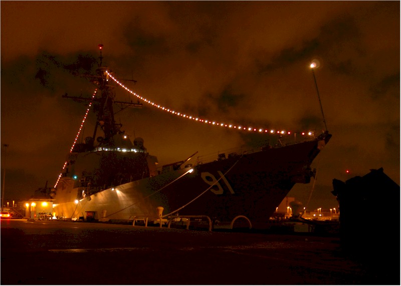 | 76k | 041220-N-0685S-005. Naval Base San Diego, December 20, 2004, the guided missile destroyer USS Pinckney (DDG 91) is decorated for the holiday season while moored at Naval Station San Diego. U.S. Navy Photo by Photographer’s Mate 3rd Class Jo A. Wilbourn Sims. | Robert M. Cieri |