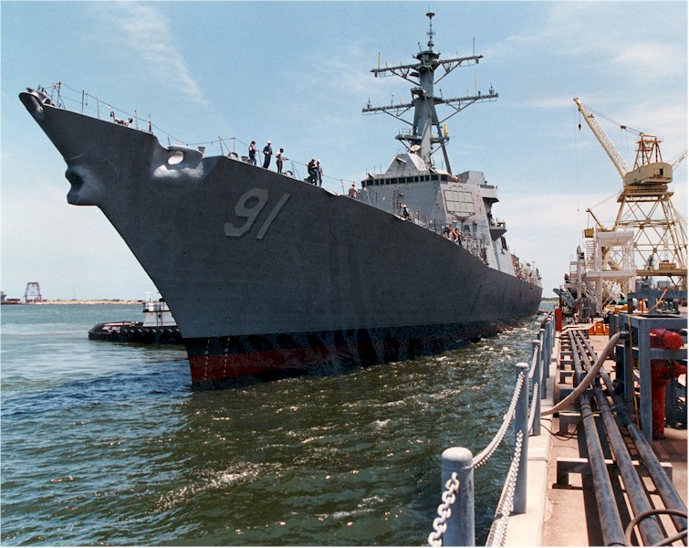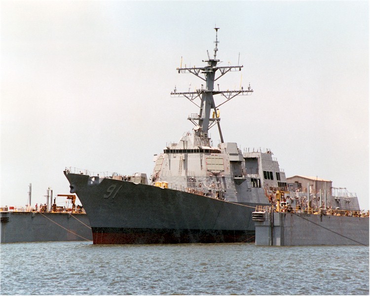 | 102k | Port bow view of the USS Pinckney (DDG 91) during the official float-off from a floating dry dock at the Northrop Grumman Ingalls Shipyard, Pascagoula, Mississippi on 26 June 2002. Ingalls Shipbuilding Photo. ID# DN-SD-04-09080. | Robert M. Cieri |