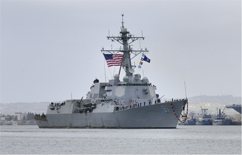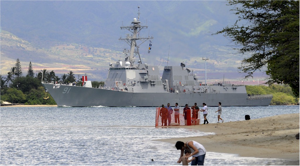 | 182k | 080708-N-1722M-095. Pearl Harbor, Hawaii, July 8 2008, the guided-missile destroyer USS Pinckney (DDG 91) leaves Pearl Harbor to participate in Rim-of-the-Pacific (RIMPAC) 2008. RIMPAC is the world's largest multinational exercise and is scheduled biennially by the U.S. Pacific Fleet. Participants include the United States, Australia, Canada, Chile, Japan, the Netherlands, Peru, Republic of Korea, Singapore, and the United Kingdom. U.S. Navy photo by Mass Communication Specialist 1st Class Michael Moriatis. | Robert M. Cieri |