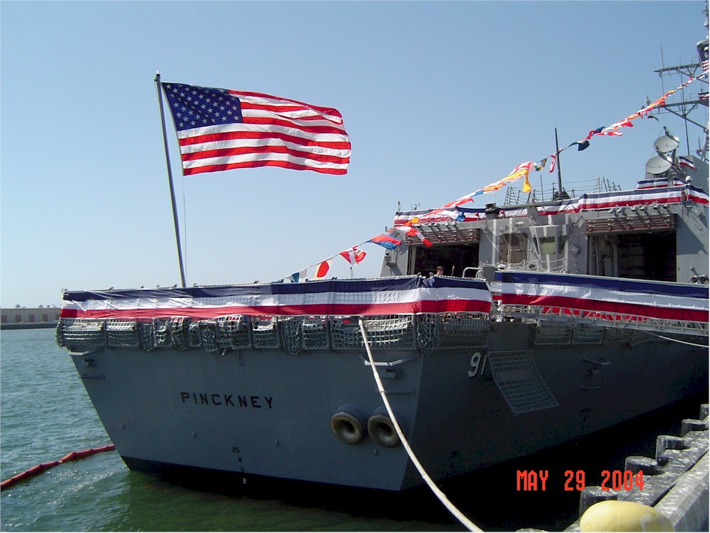 | 76k | Coronado, California, May 5 2004, the Navy’s newest guided missile destroyer PCU Pinckney (DDG 91) sailed past downtown San Diego for the first time on the way to its homeport Naval Base San Diego. Pinckney’s commissioning ceremony will be held May 29, 2004 at Port Hueneme, Calif., when it will officially become a United States Ship (USS). | Fred Weiss |