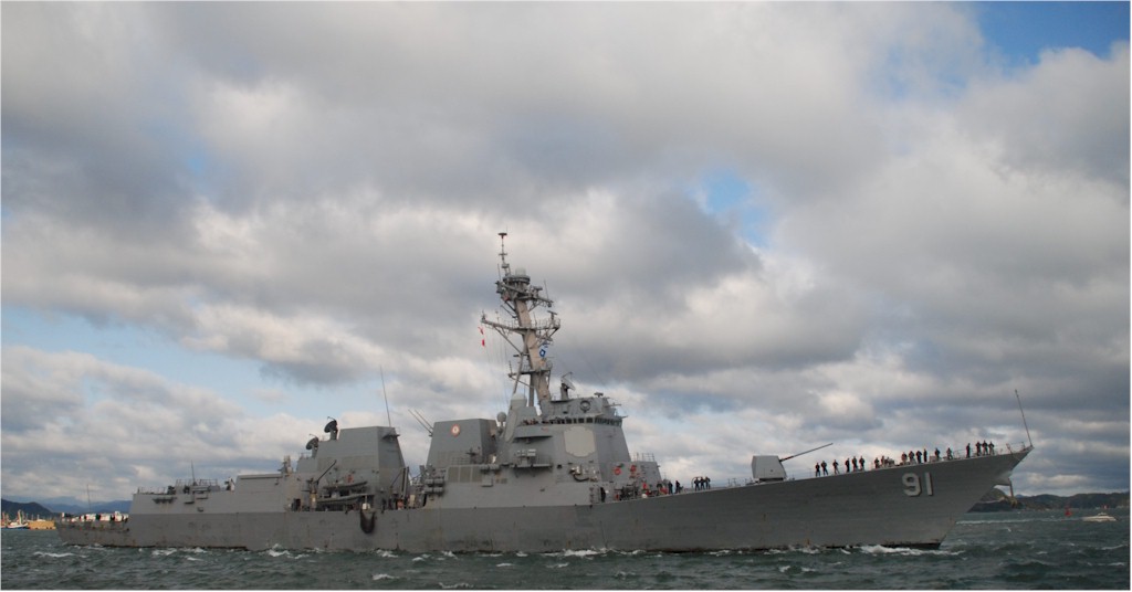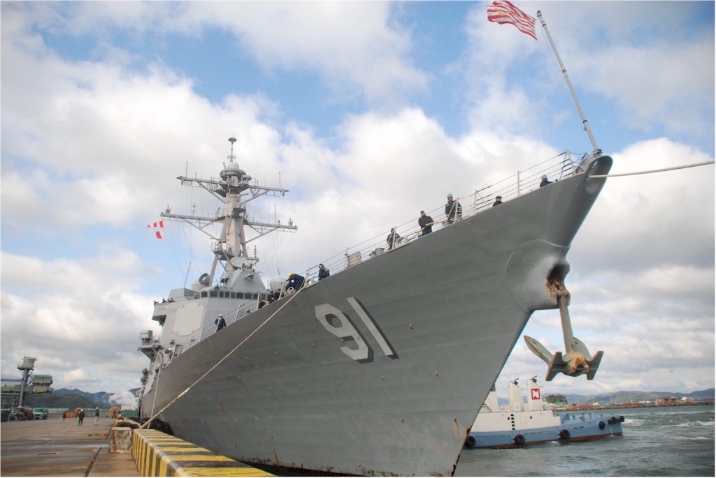 | 118k | Tokushima, the forward-deployed Arleigh Burke class guided-missile destroyer USS Pinckney (DDG-91) is moored to Komatsushima Pier in Tokushima for a scheduled port visit. Pinckney is deployed to the Commander, U.S. Seventh Fleet’s area of responsibility as part of the USS Nimitz (CVN 68) Carrier Strike Group. U.S. Navy photo by Mass Communication Specialist 3rd Class Dominique Pineiro. | Bill Gonyo |