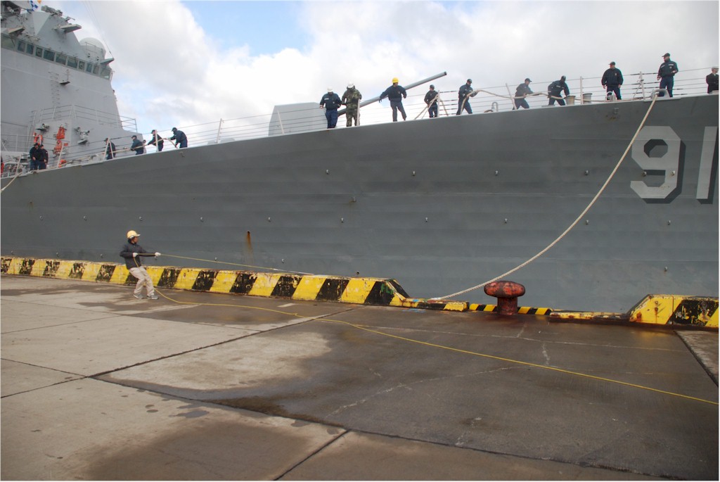 | 126k | 100228-N-3283P-002. Tokushima, Japan, February 28 2010, a Japanese line handler moors the guided-missile destroyer USS Pinckney (DDG 91) to Komatsushima Port in Tokushima. Pinckney is conducting operations in the U.S. 7th Fleet area of responsibility. U.S. Navy photo by Mass Communication Specialist 3rd Class Dominique Pineiro. | Robert M. Cieri |