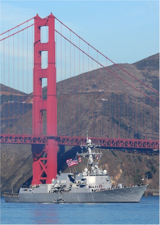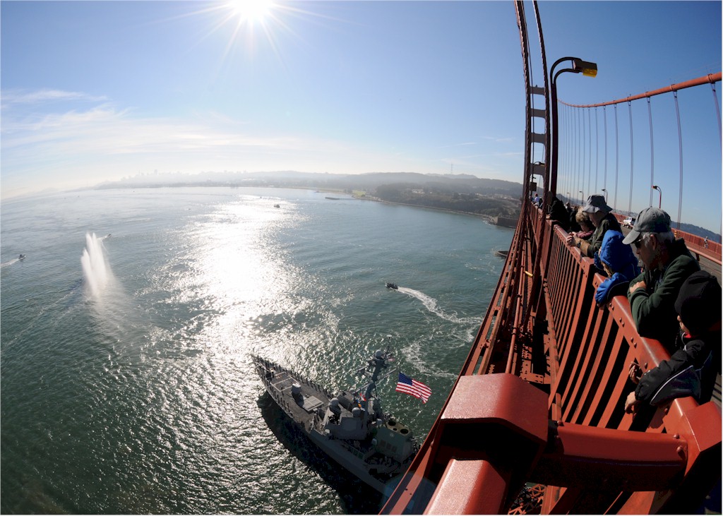 | 204k | 101009-N-1805P-107. Golden Gate, October 9 2010, the guided-missile destroyer USS Pinckney (DDG 91) sails under the Golden Gate Bridge into San Francisco Bay. The ship will be located at Pier 35 to participate in San Francisco Fleet Week 2010, which will feature more than 3,000 Sailors, Marines and Coast Guardsmen and is designed to give the military sea services an opportunity to showcase their operational capabilities. US Navy photo by MC1 Jason J. Perry. | Robert M. Cieri |