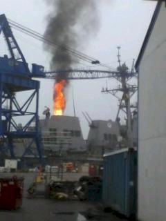 | 16k | PCU Spruance (DDG-111) fire aboard at Bath Iron Works, the fire started because of a malfunction in the computer that regulates the fuel, the fuel continued pumping while the engine was not firing, then ignited. | Ron Reeves |