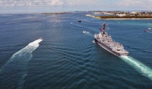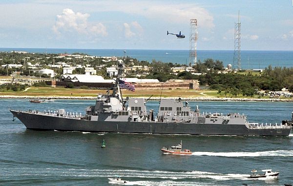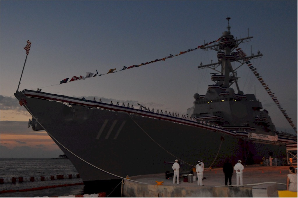 | 65k | 110923-N-AC979-116 Key West, FL, September 23, 2011, the guided-missile destroyer pre-commissioning unit (PCU) Spruance (DDG 111) arrives at Naval Air Station Key West for its formal commissioning ceremony to be held Oct. 1. The ship, named in honor of Adm. Raymond Spruance, commander of Carrier Task Force 16 during the World War II Battle of Midway, is commanded by Cmdr. Tate Westbrook of Murfreesboro, Tenn. Spruance is the second Navy ship to bear the name and the 61st ship in the Arleigh Burke-class of Navy destroyers. U.S. Navy photo by Mass Communication Specialist 2nd Class Michael K. McNabb. | Tony Cowart |